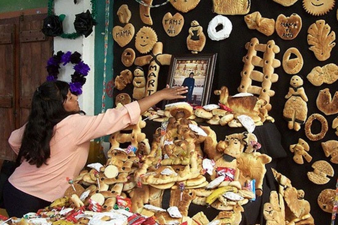 Ese día en muchas casas se hornean figuras amasadas con harina lcon forna de angelitos, escaleras -para que el alma baje a comer y suba nuevamente al cielo-, palomas, corazones, cruces y también los objetos que representen lo que el muerto amó en su vida como un perro o tal vez una guitarra.